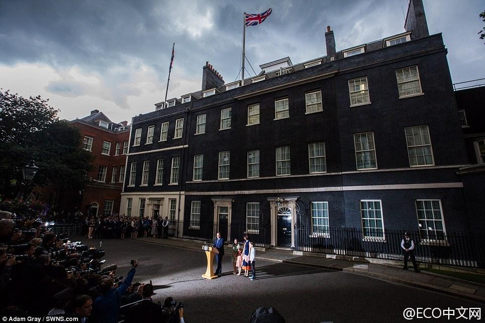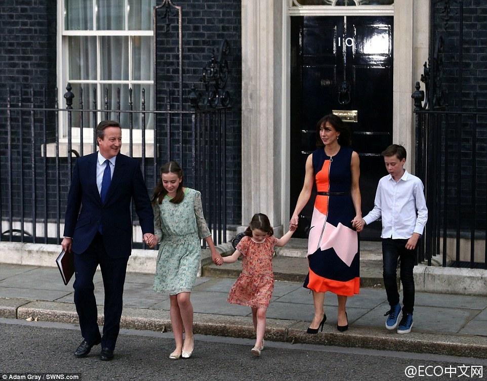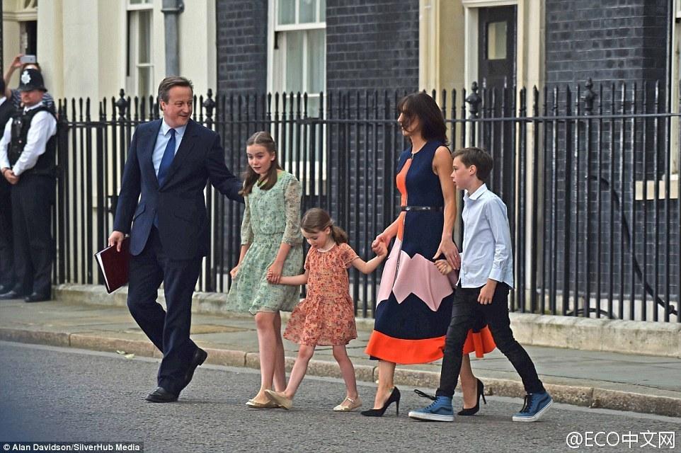卡梅伦一家挥别欢送民众,离开唐宁街10号,正式结束首相生涯。